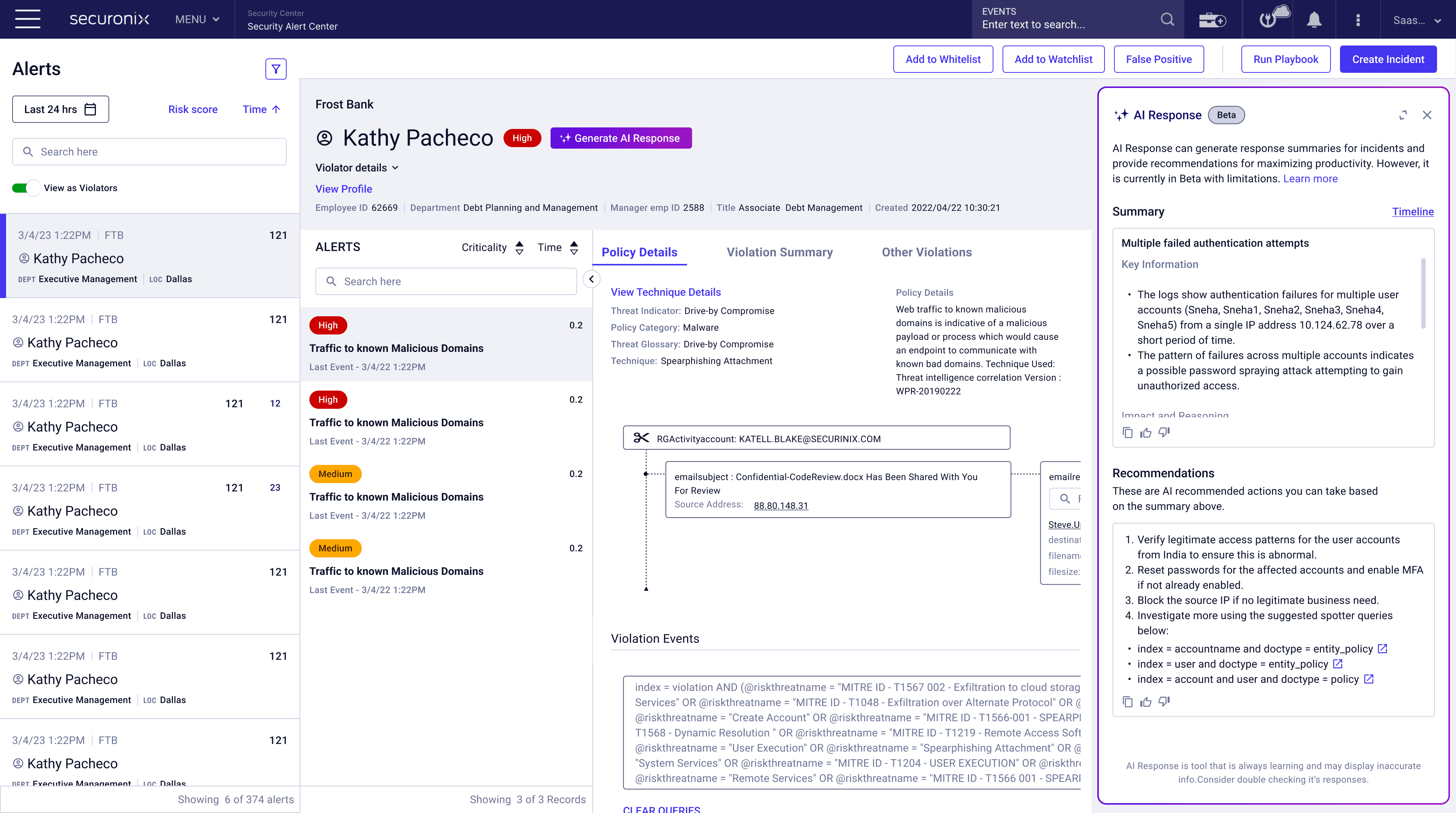 The time to respond to an incident can be reduced significantly thanks to AI automation and Securonix maintains competitiveness